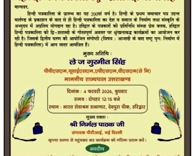 राज्यपाल ने हरिद्वार में हिंदी पत्रकारिता के 200 वर्ष पूरे होने पर आयोजित समारोह का किया शुभारंभ