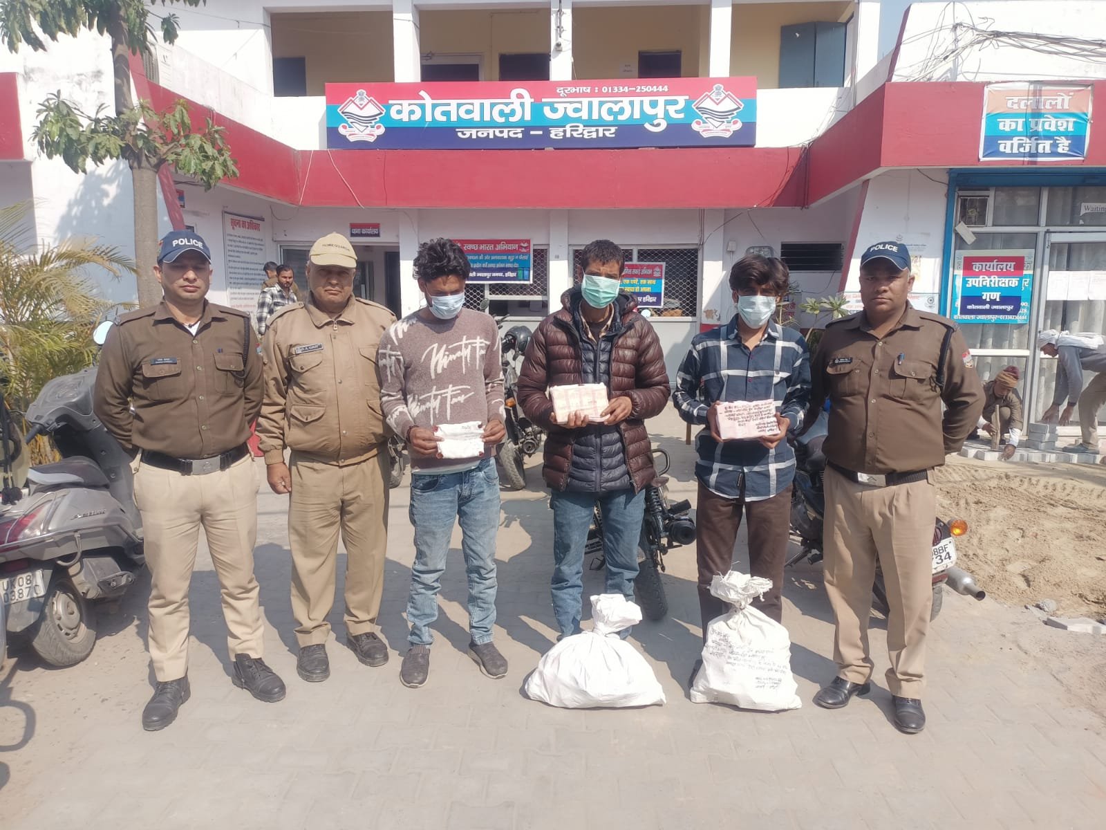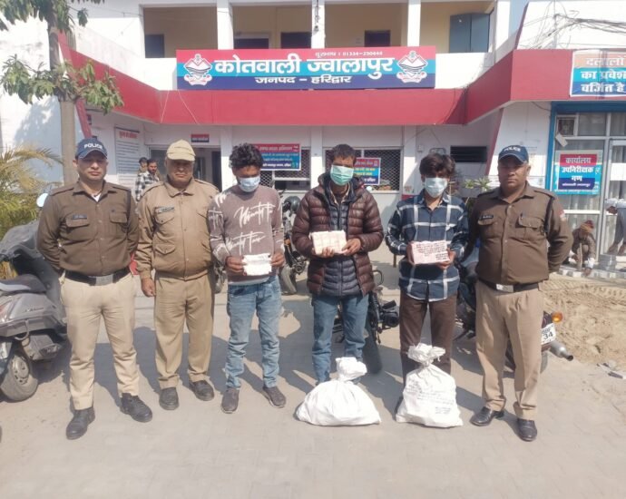 ज्वालापुर में शराब तस्कर और सट्टेबाज गिरफ्तार हरिद्वार। ज्वालापुर कोतवाली पुलिस ने अवैध गतिविधियों के खिलाफ अभियान चलाते हुए तीन आरोपियों को गिरफ्तार किया है। चेकिंग के दौरान पुलिस ने शिव प्रसाद और वंश शर्मा को 102 पव्वे देशी शराब के साथ दबोचा। वहीं, एक अन्य कार्रवाई में सैफ अली