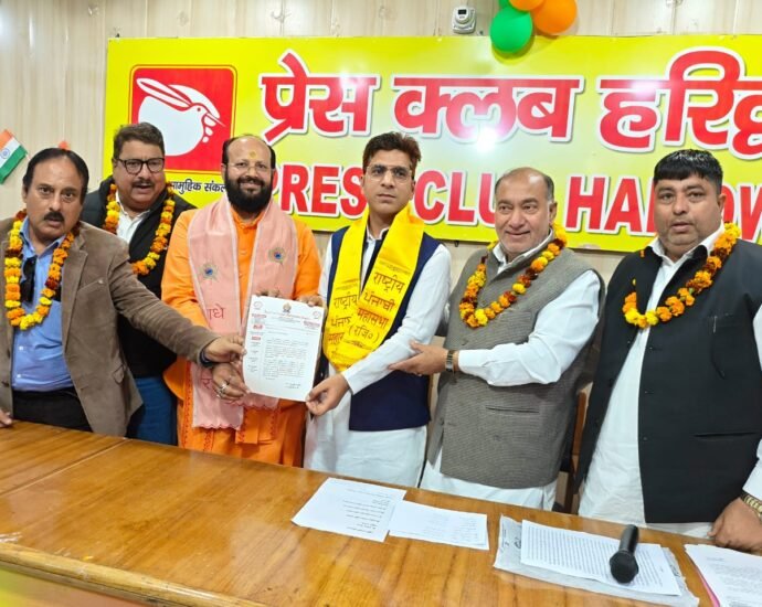 हरिद्वार, 22 फरवरी। राष्ट्रीय पंजाबी महासभा के राष्ट्रीय अध्यक्ष और हरियाणा के पूर्व राज्य सूचना आयुक्त अशोक मेहता ने हरिद्वार प्रेस क्लब में आयोजित एक भव्य समारोह में समाजसेवी सुनील सेठी को महासभा का उत्तराखंड प्रदेश अध्यक्ष नियुक्त किया। महंत ऋषिवरानंद महाराज की अध्यक्षता में हुए इस कार्यक्रम में समाज