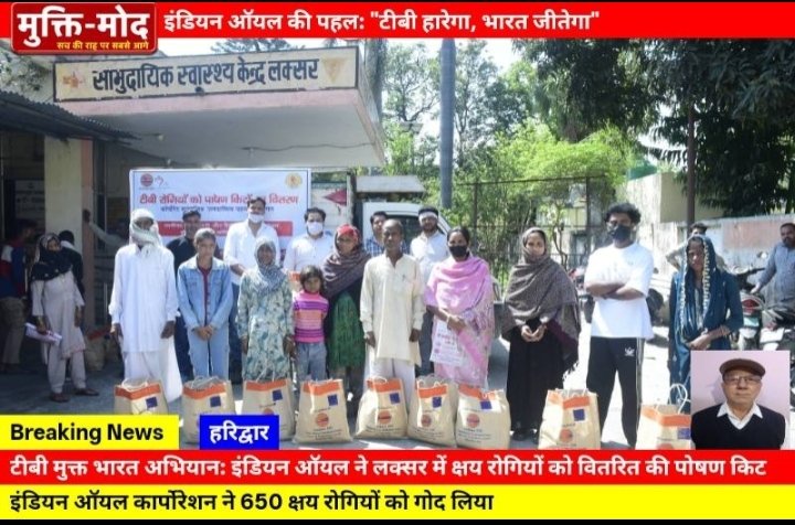 इंडियन ऑयल की पहल: हरिद्वार में 650 टीबी मरीजों को लिया गोद, बांटी पोषण किट हरिद्वार, 22 मार्च 2026: प्रधानमंत्री के ‘टीबी मुक्त भारत’ अभियान के तहत इंडियन ऑयल कार्पोरेशन (पानीपत रिफाइनरी) ने सामुदायिक स्वास्थ्य केंद्र लक्सर में गोद लिए गए टीबी मरीजों को पोषण किट वितरित की। मुख्य बिंदु: