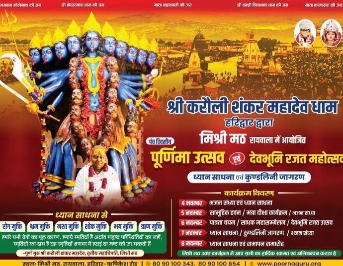 आन्दोलनकारियों के संघर्ष व बलिदान से हुई उत्तराखण्ड की स्थापना : करौली शंकर महादेव प्रदेश निर्माण में मातृशक्ति की रही महत्वपूर्ण भूमिका : स्वामी हरिचेतनानन्द हरिद्वार, 06 नवम्बर, 2025 उत्तराखण्ड की रजत जयंती के अवसर पर हरिद्वार की पुण्यभूमि स्थित मिश्री मठ में आयोजित पंचदिवसीय पूर्णिमा महोत्सव के तीसरे दिनContinue Reading