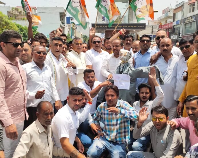 विधायक मदन कौशिक के नेतृत्व में भाजपा कार्यकर्ताओं द्वारा कांवड़ियों पर पुष्पवर्षा