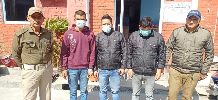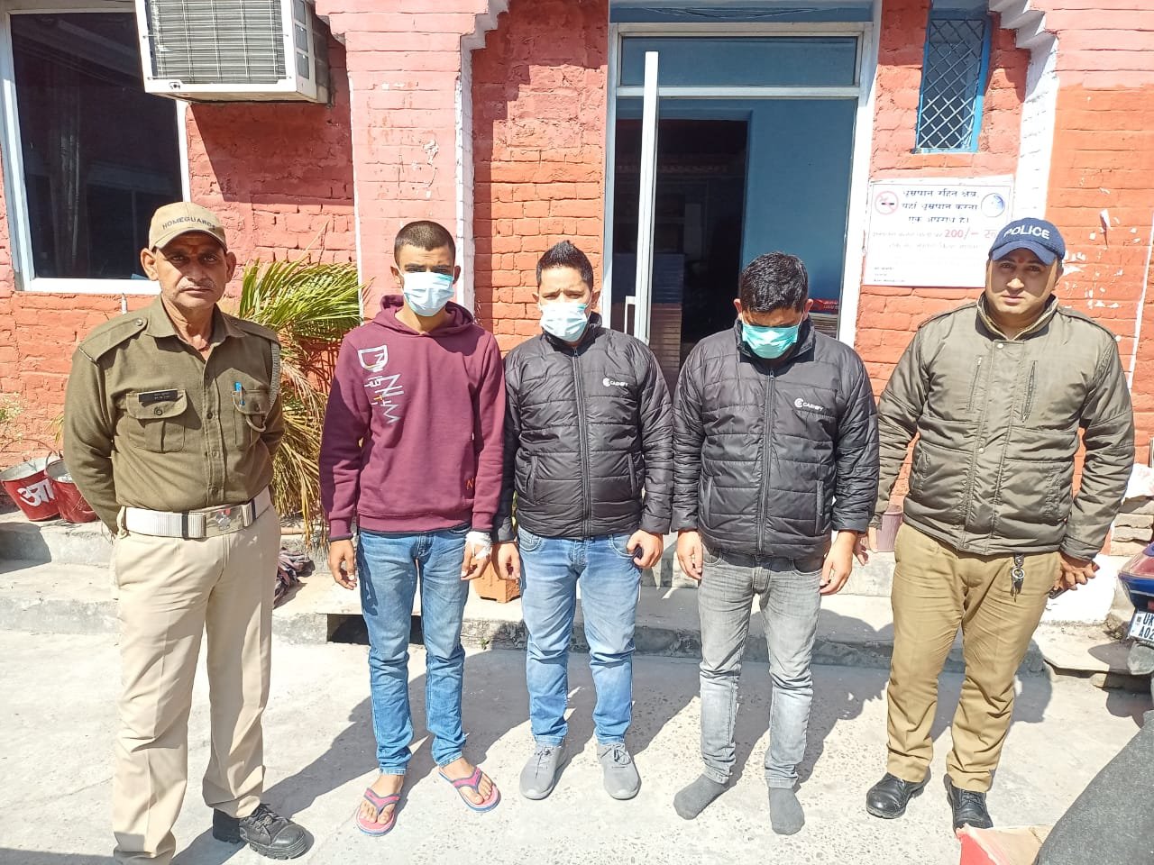 हरिद्वार। नगर कोतवाली पुलिस ने तीन मोबाईल चोरों को गिरफ्तार कर 6 मोबाईल फोन बरामद किए हैं। कोतवाली पुलिस से मिली जानकारी के अनुसार राधेश गुप्ता निवासी होटल विनायक इन चित्रा टाकीज वाली गली ने उनके होटल से मोबाईल फोन चोरी होने के संबंध में मुकद्मा दर्ज कराया था। मुकद्मा दर्ज करने के बाद कार्रवाई करते हुए पुलिस ने अमन अरोडा पुत्र सुभाष अरोडा निवासी गायत्री विहार कालोनी गेट न.4 शान्तिकुंज के पास भूपतवाला, सोहन सिंह जगवाण पुत्र किशन सिंह जगवाण निवासी नया गांव मलान पटेलनगर देहरादून हाल निवासी कैशीफाई स्टोर निकट विशाल मेगामार्ट पुराना रानीपुर मोड हरिद्वार व शैलेश द्विवेदी पुत्र राजेन्द्र प्रसाद निवासी दुगड्डा थाना कोटद्वार जिला पौडी गढवाल हाल निवासी कैशीफाईस्टोर निकट विशाल मेगामार्ट पुराना रानीपुर मोड हरिद्वार को गिरफ्तार कर लिया। आरोपियों के कब्जे से 6 मोबाईल फोन बरामद हुए हैं।