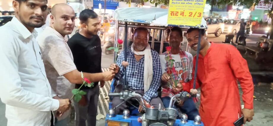 यूथ कांग्रेस कार्यकर्ताओं ने राहगीरों को फूल वितरित कर दिया एकता का संदेश