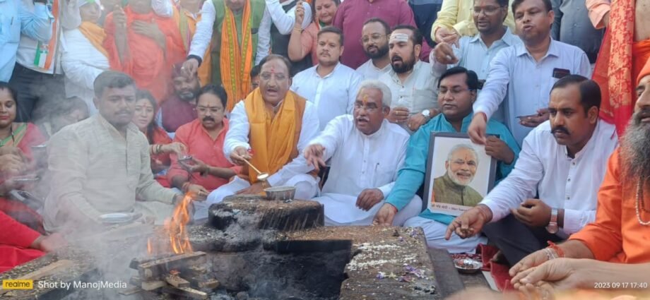 साधक से लेकर प्रधान सेवक के तौर पर राष्ट्र को नई ऊंचाइयों पर ले जाने का कार्य प्रशंसनीय -डॉ.निशंक हरिद्वार। भारतीय जनता पार्टी द्वारा प्रधानमंत्री नरेंद्र मोदी के 73वें जन्मदिवस पर प्रधानमंत्री की दीर्घायु हेतु गंगा घाट हर की पौड़ी पर हवन पूजन एवं गंगा आरती की गई। इस अवसर पर देवभूमि के अनेक साधु संतों महामंडलेश्वर ललितानंद गिरि,राम मुनि महाराज,अरुण दास महाराज,रघुवीर दास महाराज के साथ पूर्व मुख्यमंत्री एवं सांसद डॉक्टर रमेश पोखरियाल निशंक,नगर विधायक मदन कौशिक,रानीपुर विद्यायक आदेश चौहान ,राष्ट्रीय महामंत्री महिला मोर्चा दीप्ति रावत ,राजीव शर्मा,अमरीष गर्ग एवं पदाधिकारी ने प्रतिभाग किया। इस अवसर पर डॉक्टर निशंक ने कहा कि जिस प्रकार एक साधक से लेकर प्रधान सेवक के सफर में मां भारती की सेवा के कर्तव्य पथ पर चलते हुए राष्ट्र को नित नई ऊंचाइयों पर ले जाने का जो कार्य प्रधानमंत्री द्वारा किया जा रहा है वह अत्यंत प्रशंसनीय है। प्रधानमंत्री मोदी की विदेश नीति एवं कूटनीति से वैश्विक स्तर पर जिस प्रकार देश का मस्तक ऊंचा उठा है उससे हर भारतीय अपने आप में गौरवान्वित महसूस कर रहा है। देश में चारों ओर विकास की गंगा बह चली है आपके द्वारा गरीब कल्याण को लेकर हर दिशा में काम किया जा रहा है। जी20 की आयोजन से आज देश का मान पूरी दुनिया में बढ़ा है। आज देश विश्व गुरु बनने की और अग्रसर है। आज भारत चांद पर पहुंच चुका है और सूर्य की दूरी को नाप रहा है। मोदी के संकल्प से देश के सुदूर क्षेत्रों में सरकार की नीतियों का लाभ पहुंच रहा है आपके कुशल नेतृत्व में बुजुर्ग,गरीब,किसान,शोषित,वंचित,खिलाड़ियों,महिलाओं,आदिवासी भाई बहनों का सशक्तिकरण सुनिश्चित हो रहा है। वही भारत बुनियादी ढांचे के विकास के साथ-साथ आर्थिक व सामाजिक विकास में विकसित देशों की बराबरी कर रहा है। देश एवं देवभूमि उत्तराखंड का विकास आपके कुशल नेतृत्व में इसी प्रकार होता रहे,ऐसा हम मां गंगा से प्रार्थना करते हैं हम सब आपको जन्म दिवस पर अपनी शुभ मंगलकामनाएं प्रेषित करते हैं। इस अवसर पर जिला महामंत्री आशु चौधरी,आशुतोष शर्मा,जिला उपाध्यक्ष लव शर्मा,सांसद प्रतिनिधि ओमप्रकाश जमदग्नि,विकास तिवारी,जितेंद्र चौधरी,आभा शर्मा,मनोज शर्मा,मनोज गर्ग, नेत्रपाल चौहान,उज्ज्वल पंडित,नकली राम सैनी,मंडल अध्यक्ष तरुण नायर,राजेश शर्मा,हीरा सिंह बिष्ट,अरविंद अग्रवाल,कैलाश भंडारी ,प्रीति गुप्ता,कामिनी सडाना,रेनू शर्मा, गोमती मिश्रा, प्रमिला गुप्ता,पुष्पा पाल,सतीश कुमार भूषण सिंह,राजन मेहता, वीरेंद्र कुमार,संजय कुमार,राजीव भट्ट, बलकेश राजोरिया,मनोज पारलिया,विशाल गर्ग,नमन गोस्वामी,प्रिंस लोहट,अरुण आर्य, संजीव पुंडीर,मनोज गौतम,विक्की आडवाणी आदि उ