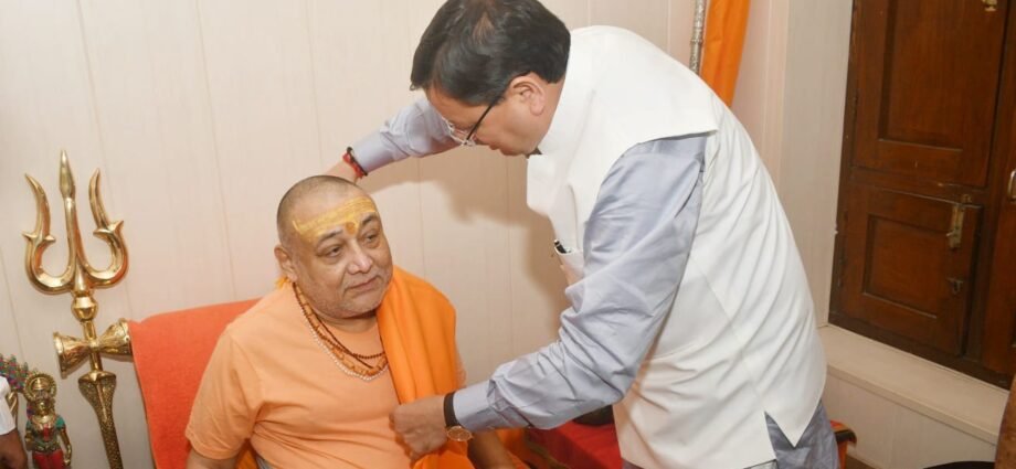 हरिद्वार: (सूवि) मुख्यमंत्री श्री पुष्कर सिंह धामी ने शुक्रवार को कनखल स्थित जगतगुरू आश्रम में जगतगुरू शंकराचार्य स्वामी राजराजेश्वराश्रम से शिष्टाचार भेंट की तथा उनका आशीर्वाद प्राप्त किया ।