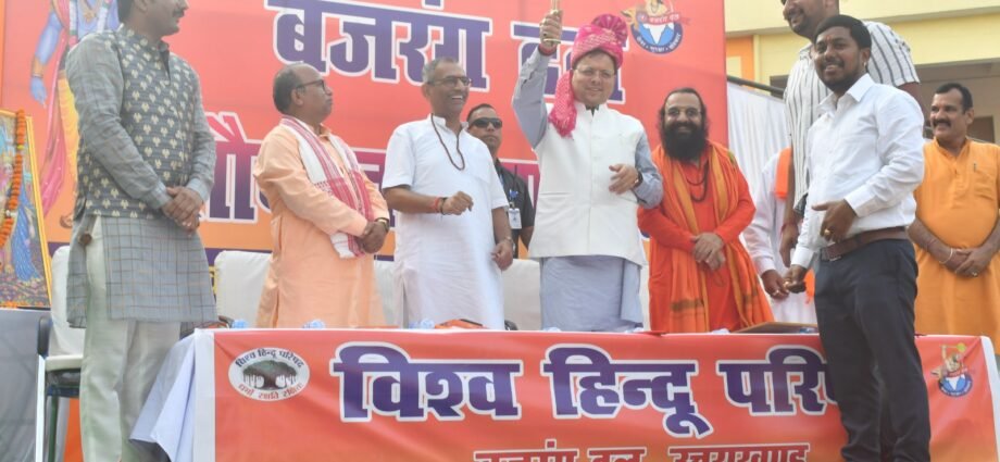 हरिद्वार : मुख्यमंत्री श्री पुष्कर सिंह धामी ने शुक्रवार को सरस्वती विद्या मन्दिर इण्टर कॉलेज मायापुर में विश्व हिन्दू परिषद के अन्तर्गत बजरंग दल के नेतृत्व में आयोजित विगत 19 सितम्बर से बद्रीनाथ के माणा गांव से प्रारम्भ हुई ’’शौर्य जागरण यात्रा’’ के समापन कार्यक्रम में प्रतिभाग किया।