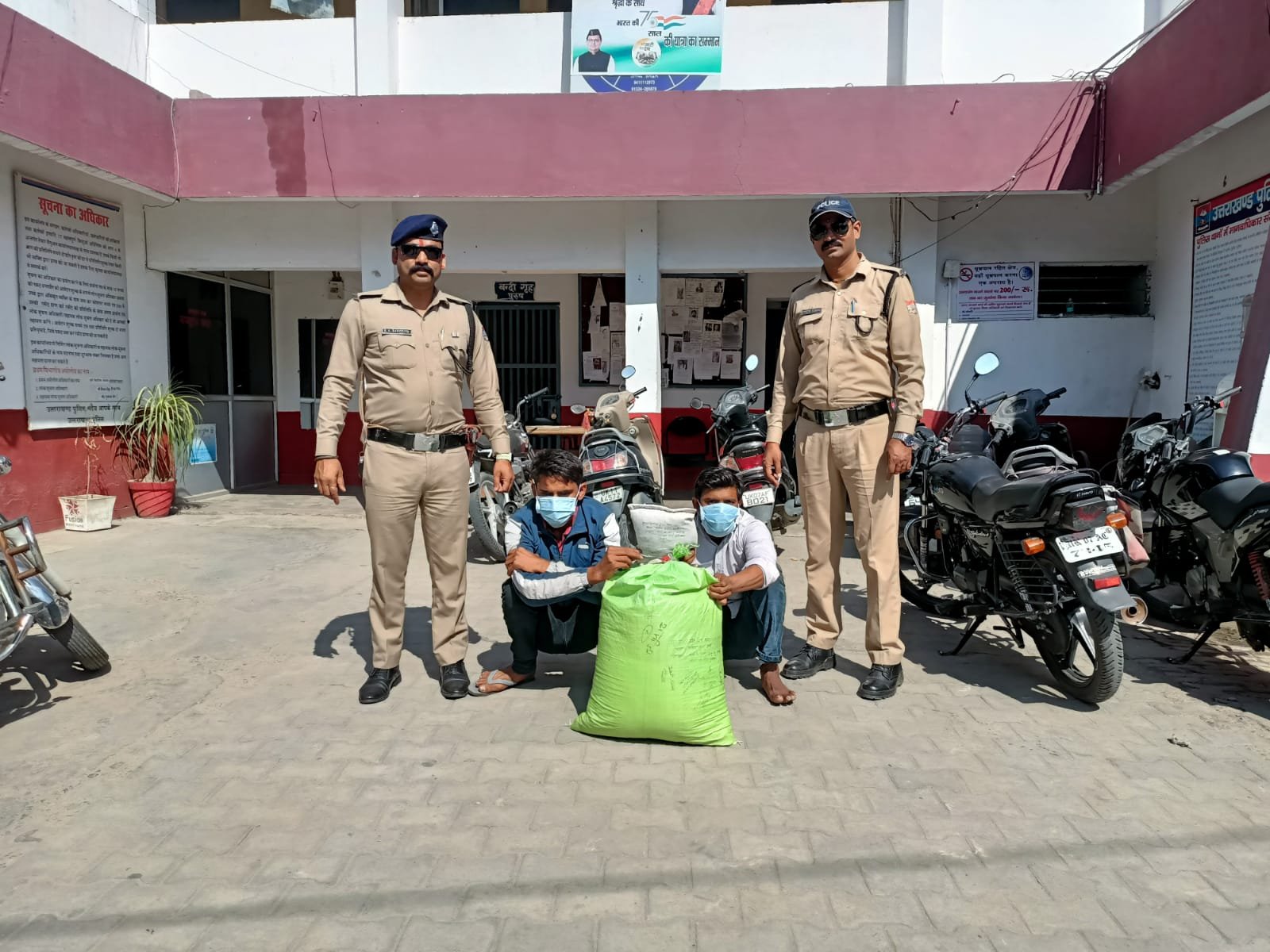 हरिद्वार। ज्वालापुर कोतवाली पुलिस ने दो तस्करों को गिरफ्तार कर भारी मात्रा में गांजा बरामद किया है। गिरफ्तार दोनों आरोपी यूपी के मेरठ व मुजफ्फरनगर जनपद के रहने वाले हैं। मादक पदार्थो की तस्करी व बेचने वालों के खिलाफ चलाए जा रहे अभियान के तहत गठित पुलिस टीम ने मुखबिर की सूचना पर कार्रवाई करते हुए पुल जटवाड़ा के निकट नहर पटरी पर चेकिंग के दौरान प्रवीण कुमार पुत्र नरेश कुमार निवासी ग्राम जाटोली कंकरखेड़ा मेरठ व विशाल पुत्र स्वर्गीय रविंद्र कुमार निवासी ग्राम हसौली शाहपुर मुजफ्फरनगर को गिरफ्तार कर लिया। आरोपियों के कब्जे से 18 किलो गांजा बरामद हुआ है। आरोपियों के खिलाफ एनडीपीएस एक्ट के तहत मुकद्मा दर्ज किया गया है। पुलिस टीम में कोतवाली प्रभारी विजय सिंह, एसएसआई संतोष सेमवाल,रेल चौकी प्रभारी एसआई देवेंद्र सिंह तोमर, दीपक चौहान,कांस्टेबल महावीर पुंडीर,रणवीर सिंह,खजाना सिंह,गणेश तोमर,राजेश बिष्ट शामिल रहे।
