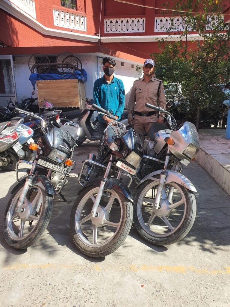अलग-अलग स्थान से चोरी की गयी तीन बाइक बरामद