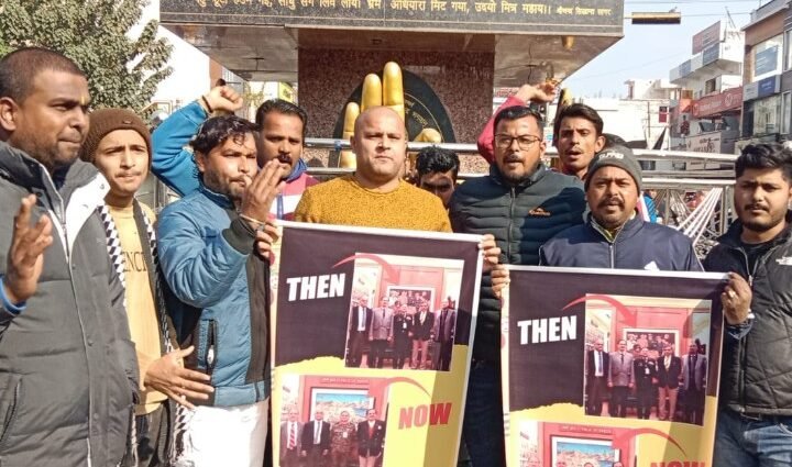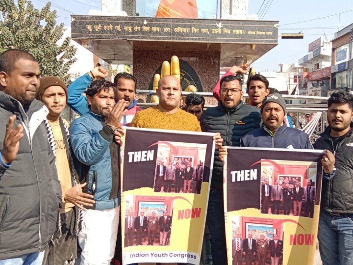 हरिद्वार: पूर्व प्रधानमंत्री इंदिरा गांधी द्वारा वर्ष 1971 में पाकिस्तान के दो टुकड़े कर बांग्लादेश बनाने के बाद पाकिस्तानी सेना के समर्पण की तस्वीर को आर्मी हेडक्वार्टर से हटाने का आरोप लगाते हुए युवा कांग्रेस ने विरोध प्रदर्शन किया। युवा कांग्रेस जिलाध्यक्ष कैश खुराना के नेतृत्व में कार्यकर्ताओं चंद्राचार्य चौक पर प्रदर्शन कर केंद्र सरकार के खिलाफ विरोध जताया। इस अवसर पर जिलाध्यक्ष कैश खुराना ने कहा कि जिस तस्वीर पर पूरा देश गर्व करता था। उसे हटवाना बहुत शर्मनाक है।तत्कालीन प्रधानमंत्री इंदिरा गांधी ने अपने कार्यकाल में पाकिस्तान को घुटनों पर ला दिया था और पाकिस्तान की सेना को हथियार डालने पर मजबूर कर दिया था। उस ऐतिहासिक क्षण की फोटो सेना मुख्यालय में पिछले कई दशक से लगी हुई थी। जिसे केंद्र सरकार ने हटाकर सीनरी लगा दी है। यह देश के साथ सेना का भी अपमान है,फोटो हटाने वालों पर देशद्रोह का मुकदमा होना चाहिए। हरिद्वार विधानसभा अध्यक्ष तुषार कपिल ने कहा कि फोटो हटाना सरकार की मानसिकता को दर्शाता है। बीजेपी सिर्फ देशप्रेम का दिखावा करती है और समय समय पर सेना का अपमान करती है। ऐसे लोग देश की सुरक्षा के साथ खतरा हैं। भारतीय सेना को कमजोर करने का कार्य किया जा रहा है। इस अवसर पर कांग्रेस मायापुर कार्यकारी ब्लॉक अध्यक्ष नितिन यादव,जिला सचिव डा.अनूप कुमार,जिला उपाध्यक्ष शुभम बर्मन,सोनू कुमार,मनोज सैनी,लक्की महाजन,करण सिंह राणा,अनु,दिनेश,आशीष,एजाज,गजेन्द्र पार्चा,दीपेश,राहुल,राजेंद्र आदि प्रमुख रूप से शामिल रहे।