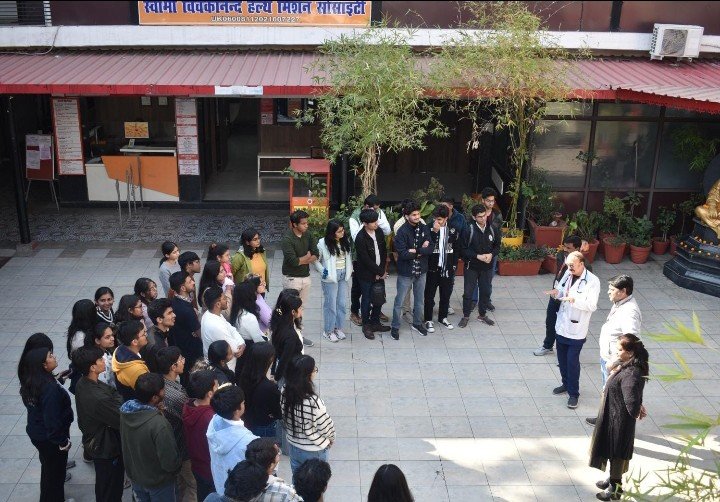 हरिद्वार। स्वामी विवेकानंद हैल्थ मिशन सोसाइटी द्वारा संचालित,स्वामी रामप्रकाश चौरिटेबल हॉस्पिटल,हरिद्वार में दिल्ली एम्स से एमबीबीएस द्वितीय वर्ष के 90छात्र-छात्राएं एवं चार फैकल्टी डॉक्टर्स ने अस्पताल का भ्रमण किया। इन छात्र-छात्राओं और चिकित्सकों ने अस्पताल के सभी विभागों को देखा। तत्पश्चात अस्पताल के डायरेक्टर डॉ संजय शाह द्वारा संस्था एवं अस्पताल का परिचय दिया गया। संस्था के विभिन्न अस्पतालों एवं कार्याे का वीडियो दिखाया गया। अवगत है कि एम्स दिल्ली के निदेशक डा.श्रीनिवास गत वर्ष छात्राओं के साथ खुद आए थे। एम्स द्वारा संस्था के विभिन्न अस्पतालों मे टेली मेडिसिन के माध्यम से स्पेशलिस्ट ओपीडी चलाई जा रही है,जिससे उत्तराखंड के दूर दराज के लोगो को गुणवत्तापूर्ण स्वास्थ सेवाए उपलब्ध कराई जा सके।