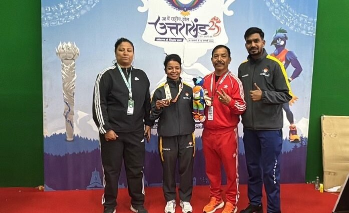 देहरादून: उत्तराखंड के लिए 38वें राष्ट्रीय खेलों का आगाज बेहद शानदार रहा है। बागेश्वर जिले की रहने वाली ज्योति वर्मा ने बुधवार को देहरादून के स्पोर्ट्स कॉलेज में आयोजित वुशु प्रतियोगिता में उत्कृष्ट प्रदर्शन करते हुए कांस्य पदक जीतकर इतिहास रच दिया है। उन्होंने न सिर्फ उत्तराखंड का खाता खोला, बल्कि इन खेलों में राज्य के लिए पहला पदक जीतने का गौरव भी हासिल किया है।