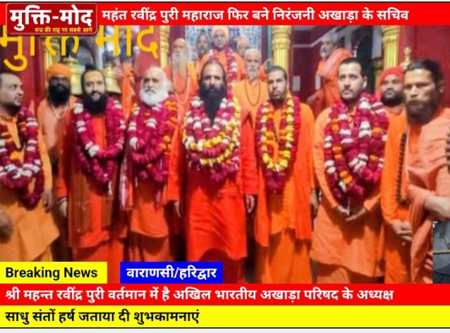 इसमें अखिल भारतीय अखाड़ा परिषद एवं मनसा देवी मंदिर ट्रस्ट के अध्यक्ष श्री महंत रविंद्र पुरी को पुनः (निरंजनी अखाड़ा) हरिद्वार सचिव चुना गया। इसके अलावा अन्य महत्वपूर्ण पदों पर भी नियुक्तियां की गईं।