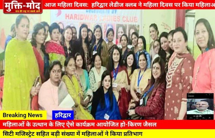 हरिद्वार: आज अंतरराष्ट्रीय महिला दिवस के अवसर पर हरिद्वार लेडीज क्लब द्वारा नेहरू युवा केंद्र में एक कार्यक्रम का आयोजन किया गया। कार्यक्रम में महिलाओं के सशक्तिकरण पर जोर दिया गया।