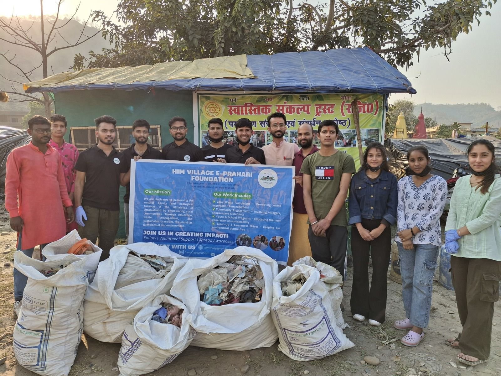 हरिद्वार: मिशन पर्यावरण संरक्षण से स्वास्थ्य संवर्धन की ओर का संकल्प लेते हुए स्वास्तिक संकल्प ट्रस्ट एवं हिम विलेज ई प्रहरी फाउंडेशन द्वारा जैसे स्वच्छ है घर बार, वैसे सुंदर हो हरिद्वार थीम के आधार पर चमगादड़ टापू के पास स्वास्तिक संकल्प घाट एवं गंगा तट पर स्वच्छता अभियान चलाया गया। साथ ही, एक पेड़ मां के नाम अभियान के अंतर्गत वृक्षारोपण भी किया गया।