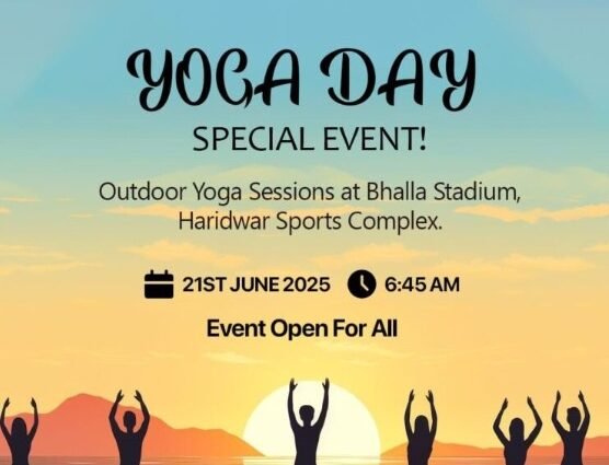 हरिद्वार, 21 जून: अंतर्राष्ट्रीय योग दिवस के अवसर पर 21 जून को हरिद्वार में कई स्थानों पर योग शिविरों का आयोजन किया जाएगा। देवपुरा स्थित हरिद्वार-रुड़की विकास प्राधिकरण के ‘हरिद्वार स्पोर्ट्स कॉम्प्लेक्स’ द्वारा भी एक विशेष योग शिविर का आयोजन किया जा रहा है।