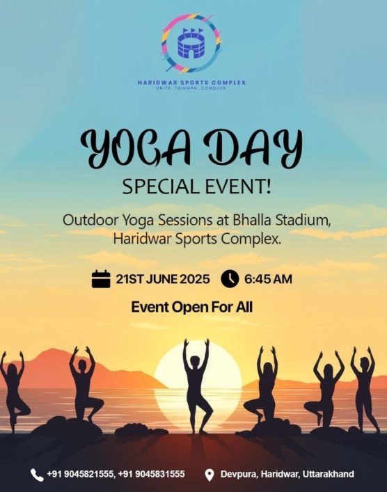 यह योग शिविर भल्ला क्रिकेट स्टेडियम में आयोजित होगा, जहाँ योग विशेषज्ञ सुबह 7:00 बजे से योग का अभ्यास कराएंगे। हरिद्वार स्पोर्ट्स कॉम्प्लेक्स के जीएम रामानुज पांडे ने बताया कि यह योग कार्यक्रम सभी के लिए खुला रखा गया है। इस शिविर में खिलाड़ी, खेल प्रेमी, स्कूली छात्र-छात्राएं और अन्य स्थानीय लोग एक साथ योग करेंगे और अंतर्राष्ट्रीय योग दिवस मनाएंगे।