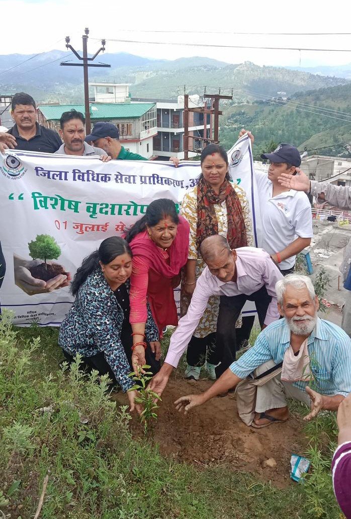 अल्मोड़ा: उत्तराखंड राज्य विधिक सेवा प्राधिकरण नैनीताल और जनपद न्यायाधीश-अध्यक्ष, जिला विधिक सेवा प्राधिकरण, अल्मोड़ा श्रीकांत पाण्डेय के मार्गदर्शन में जिला विधिक सेवा प्राधिकरण, अल्मोड़ा की सचिव शचि शर्मा ने “हरेला महोत्सव” धूमधाम से मनाया। इस अवसर पर सिमकनी मैदान और आसपास के क्षेत्रों में व्यापक वृक्षारोपण कार्यक्रम आयोजित किया गया, जिसमें फलदार, छायादार और अन्य प्रकार के वृक्ष लगाए गए। इक्विटेबल अर्थ फाउंडेशन, देहरादून एन.जी.ओ. के सहयोग से ट्री गार्ड भी लगाए गए।