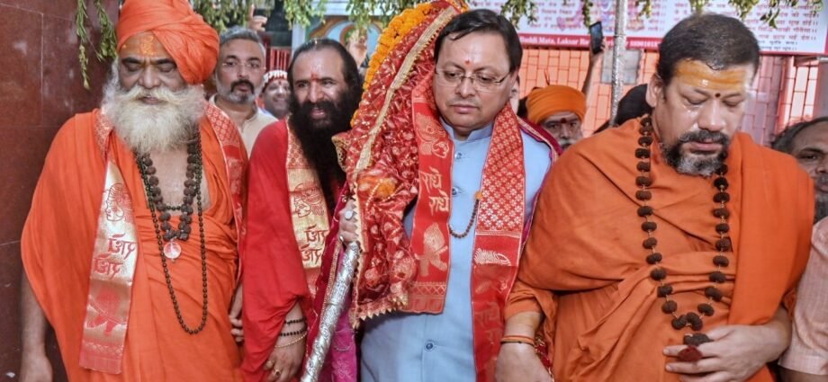 हरिद्वार: उत्तराखंड के मुख्यमंत्री श्री पुष्कर सिंह धामी ने शनिवार को तीर्थ नगरी हरिद्वार में माया देवी मंदिर के प्रांगण से पवित्र छड़ी यात्रा को वैदिक विधि-विधान और मंत्रोच्चार के साथ उत्तराखंड के चारों धामों के लिए रवाना किया।