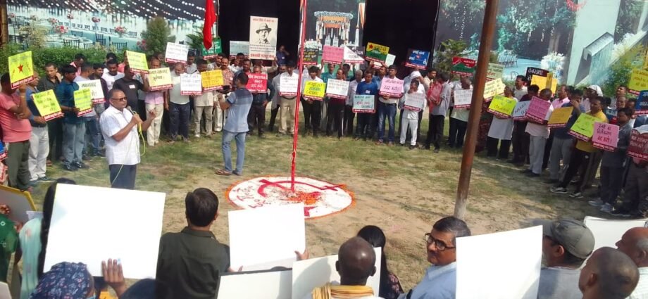 - मजदूर विरोधी चार लेबर कोड को देश के मजदूरों को गुलामी की ओर धकेलने वाला बताया गया।