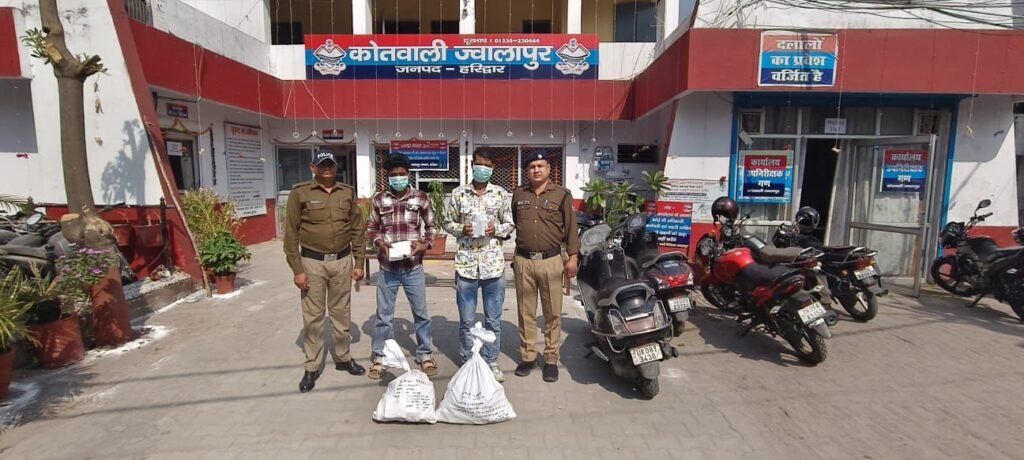 हरिद्वार। अवैध शराब के धंधे के खिलाफ अभियान के तहत कोतवाली ज्वालापुर पुलिस ने दो आरोपियों, शिव प्रसाद और अनिकेत को गिरफ्तार किया है। इनके कब्जे से अंग्रेजी शराब (रॉयल स्टैग, 8 पीएम) के 52 पव्वे और देशी शराब (माल्टा) के 52 पव्वे बरामद हुए हैं। आरोपियों के खिलाफ आबकारी अधिनियम के तहत मुकदमा दर्ज किया गया है।