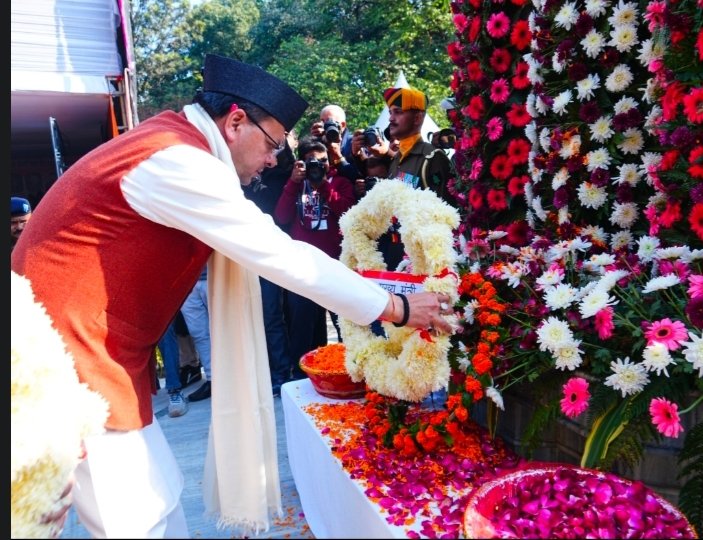 देहरादून: विजय दिवस के अवसर पर मुख्यमंत्री श्री पुष्कर सिंह धामी ने गांधी पार्क स्थित शहीद स्मारक पर पुष्पचक्र अर्पित कर 1971 के युद्ध के वीर बलिदानियों को श्रद्धांजलि दी। इस दौरान उन्होंने युद्ध के दिग्गजों और शहीद परिजनों को सम्मानित किया और सैनिक कल्याण के लिए कई महत्वपूर्ण कदम उठाने की बात कही।