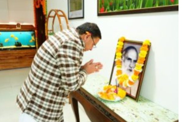 देहरादून: मुख्यमंत्री पुष्कर सिंह धामी ने बुधवार को मुख्यमंत्री आवास में महान राज्य आंदोलनकारी इंद्रमणि बडोनी की जयंती पर उन्हें भावपूर्ण श्रद्धांजलि अर्पित की।