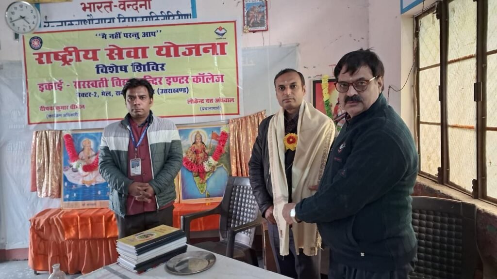 भेल सेक्टर-2 स्थित सरस्वती विद्या मंदिर इंटर कॉलेज में एनएसएस के सात दिवसीय विशेष शिविर का आगाज हुआ। मुख्य अतिथि अमित ने स्वयंसेवियों को डिजिटल जागरूकता और साइबर फ्रॉड से बचाव की जानकारी दी। शिविर में 50 छात्र सेवा कार्यों के लिए प्रतिभाग कर रहे हैं।