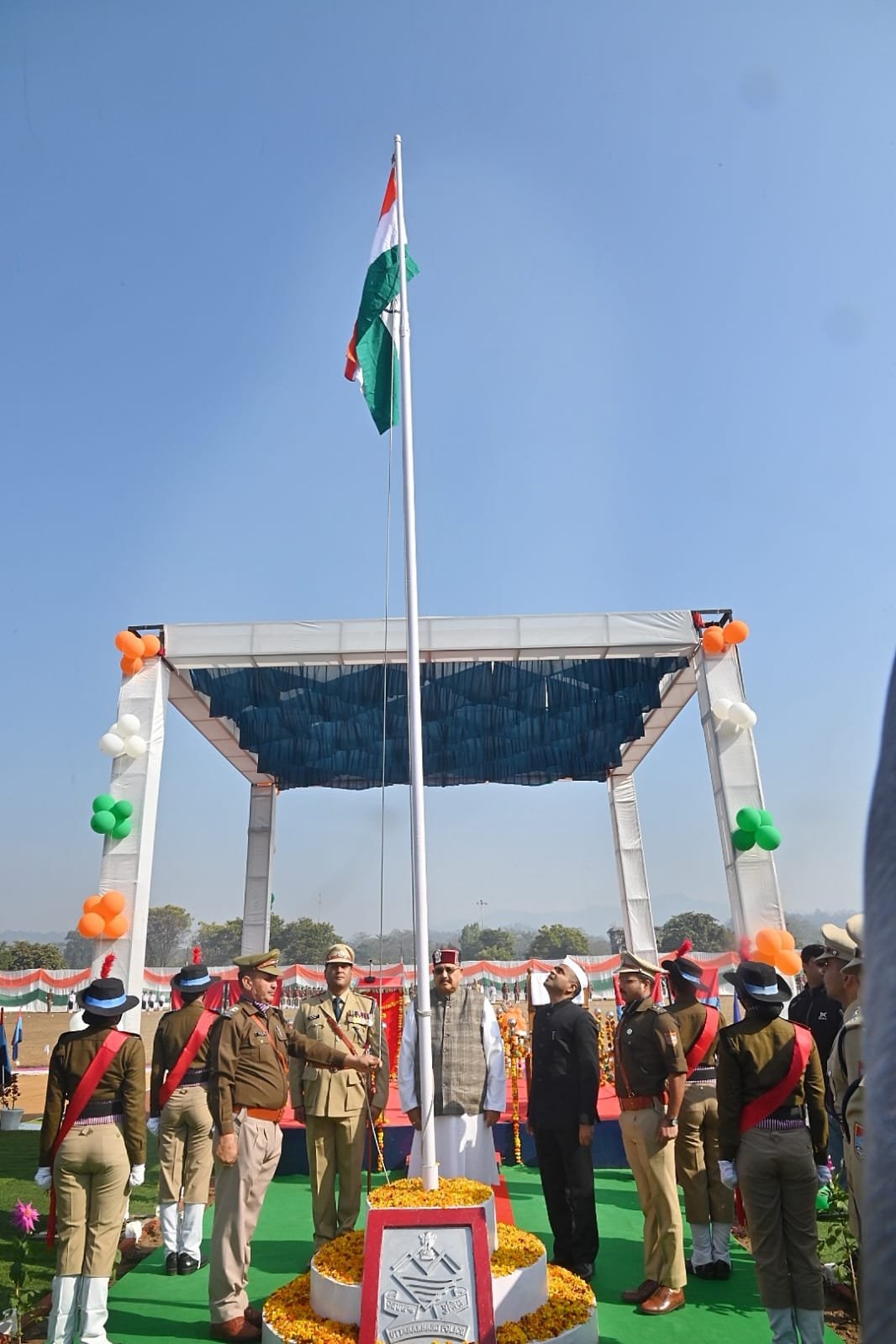 हरिद्वार। धर्मनगरी में 77वां गणतंत्र दिवस हर्षोल्लास के साथ मनाया गया। मुख्य कार्यक्रम रोशनाबाद स्थित पुलिस लाइन में आयोजित किया गया, जहाँ मुख्य अतिथि प्रदेश के पर्यटन मंत्री सतपाल महाराज ने ध्वजारोहण किया। इस अवसर पर परेड कमांडर सीओ अभिनव चौधरी के नेतृत्व में पुलिस बल ने भव्य मार्च पास्ट किया। कार्यक्रम के दौरान विभिन्न विभागों द्वारा विकासपरक झांकियां प्रस्तुत की गईं, जिन्होंने दर्शकों का मन मोह लिया। कैबिनेट मंत्री ने सभी को गणतंत्र दिवस की शुभकामनाएं देते हुए देश की एकता और अखंडता को अक्षुण्ण रखने का आह्वान किया।