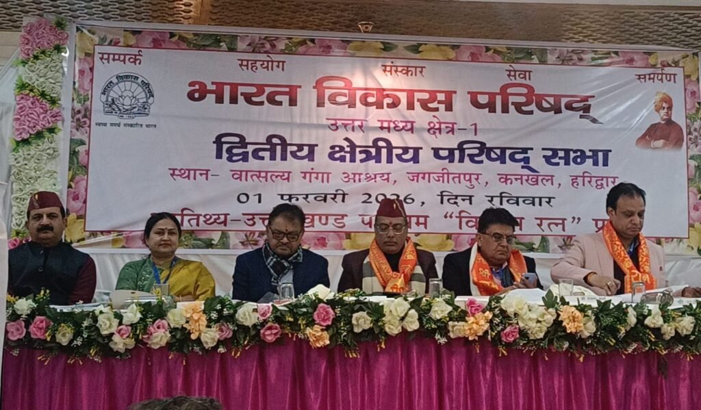 कनखल के जगजीतपुर में भारत विकास परिषद की द्वितीय क्षेत्रीय परिषद सभा संपन्न हुई। बैठक में राष्ट्रीय संयुक्त महासचिव विनित गर्ग ने संगठन के पांच सूत्रों—संपर्क, सहयोग, संस्कार, सेवा और समर्पण पर जोर दिया। सभा में आठ प्रांतों के पदाधिकारियों ने अपने कार्यों का विवरण प्रस्तुत किया और राष्ट्र उन्नति का संकल्प लिया।