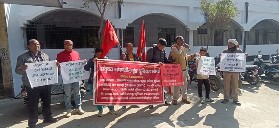 हरिद्वार, 4 फरवरी 2026: कोटद्वार में हुई सांप्रदायिक तनाव की घटना के विरोध में आज हरिद्वार के विभिन्न सामाजिक और क्रांतिकारी संगठनों ने तहसील परिसर में जोरदार प्रदर्शन किया। संगठनों ने तहसीलदार के माध्यम से राज्यपाल को ज्ञापन भेजकर दीपक और उनके साथियों पर दर्ज ‘फर्जी’ मुकदमे वापस लेने तथा बजरंग दल के कार्यकर्ताओं की तत्काल गिरफ्तारी की मांग की।
