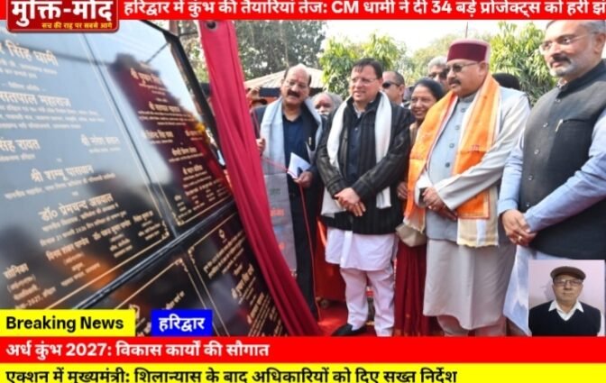 मुख्यमंत्री श्री पुष्कर सिंह धामी ने आज हरिद्वार में भव्य कुंभ-2027 हेतु ₹234.55 करोड़ की 34 विकास योजनाओं का शिलान्यास किया। 🏗️✨