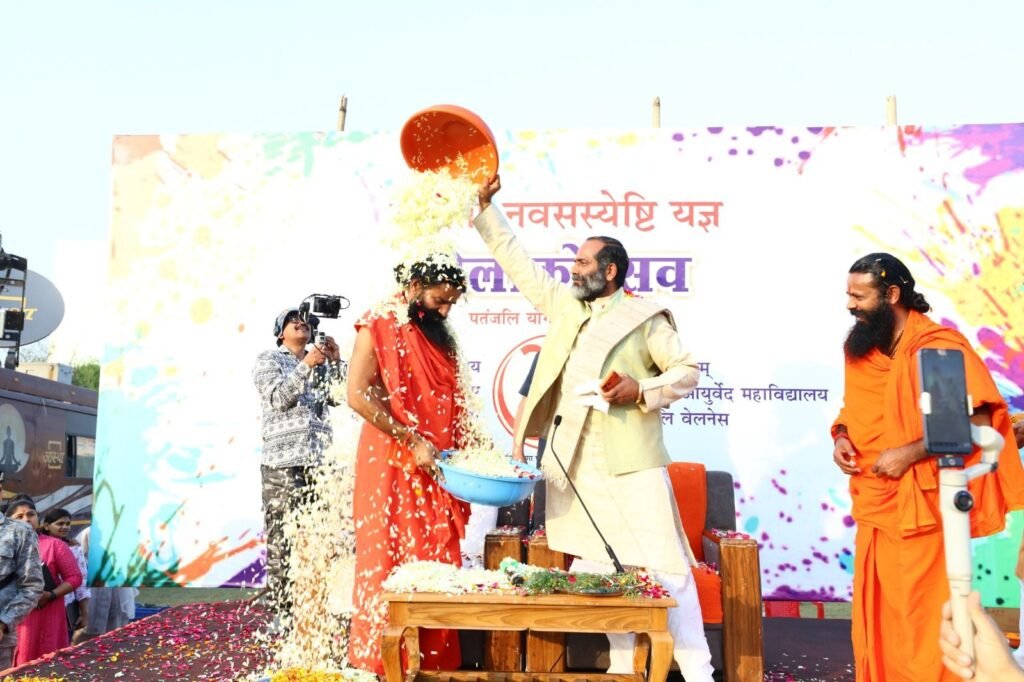 हरिद्वार: स्वामी रामदेव और आचार्य बालकृष्ण के सान्निध्य में पतंजलि विश्वविद्यालय में ‘विश्व शांति एवं समृद्धि’ के लिए विशेष यज्ञ और पुष्पों की होली खेली गई। स्वामी रामदेव ने वैश्विक युद्ध संकट पर कहा कि दुनिया को ‘युद्ध नहीं योग’ का मार्ग चुनना चाहिए। कार्यक्रम में प्राकृतिक रंगों और फूलों के उपयोग से पर्यावरण संरक्षण का संदेश दिया गया।