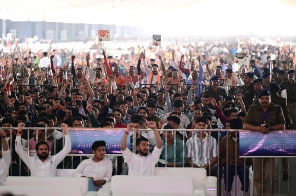 हरिद्वार। उत्तराखंड सरकार के चार वर्ष पूर्ण होने के उपलक्ष्य में आयोजित ‘जन-जन की सरकार, 4 साल बेमिसाल’ कार्यक्रम भव्यता के साथ संपन्न हुआ। इस अवसर पर केंद्रीय गृह मंत्री अमित शाह और मुख्यमंत्री पुष्कर सिंह धामी का प्रदेशभर से आए भारी जनसमुदाय, विशेषकर महिलाओं और युवाओं ने जोरदार नारेबाजी के साथ स्वागत किया।