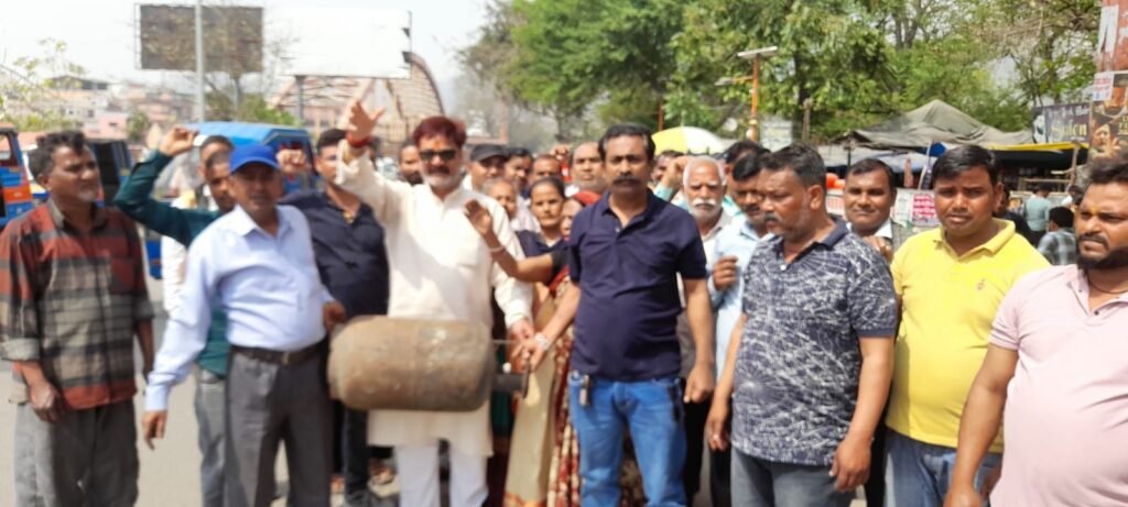 गैस सिलेंडर की कालाबाजारी के खिलाफ लघु व्यापारियों का प्रदर्शन
