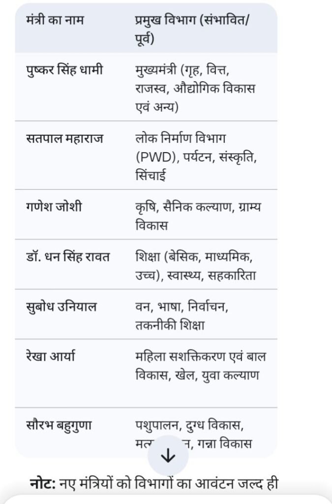 इनके अलावा, धामी कैबिनेट में पहले से ही निम्नलिखित वरिष्ठ मंत्री शामिल हैं:
