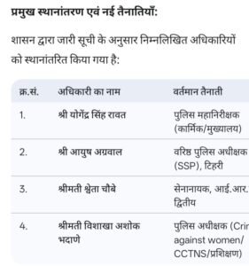 यह फेरबदल आगामी कुंभ मेले की तैयारियों और कानून व्यवस्था को और अधिक सुदृढ़ बनाने की दृष्टि से महत्वपूर्ण माना जा रहा है। विशेष रूप से टिहरी जैसे महत्वपूर्ण जनपद में अब श्रीमती श्वेता चौबे कमान संभालेंगी, जबकि योगेंद्र सिंह रावत कुंभ मेले की सुरक्षा व्यवस्था का नेतृत्व करेंगे।