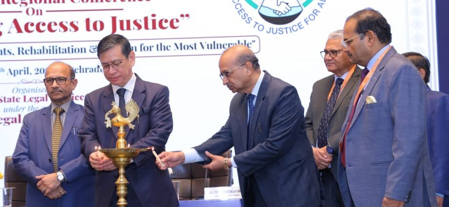 देहरादून राष्ट्रीय विधिक सेवा प्राधिकरण,नई दिल्ली के तत्वावधान में,उत्तराखंड राज्य विधिक सेवा प्राधिकरण,नैनीताल द्वारा आयोजित नॉर्थ ज़ोन रीजनल कॉन्फ्रेंस का भव्य शुभारंभ हुआ। इस वर्ष सम्मेलन का विषय इनहैंसिंग ऐसीसेस आफ जस्टिस रखा गया है,जिसकी मुख्य थीम जस्टिस वीओण्ड बैरिज राईट रिहैबीलिटेशन एण्ड रिफार्म फार द मोस्ट वैल्यूरेवलहै।इस अवसर पर उच्चतम न्यायालय,नई दिल्ली के न्यायमूर्ति जे.के.माहेश्वरी,एन.कोटेश्वर सिंह एवं संदीप मेहता,साथ ही उत्तराखंड उच्च न्यायालय,नैनीताल के मुख्य न्यायाधीश मनोज कुमार गुप्ता की विशेष उपस्थिति रही।इसके अतिरिक्त उत्तराखंड राज्य विधिक सेवा प्राधिकरण के कार्यकारी अध्यक्ष मनोज कुमार तिवारी,उत्तराखंड लीगल सर्विसेज कमेटी के अध्यक्ष न्यायमूर्ति आलोक कुमार वर्मा तथा उत्तर भारत के विभिन्न उच्च न्यायालयों से पधारे न्यायमूर्तिगण भी उपस्थित रहे। सम्मेलन में उत्तराखंड राज्य के समस्त जनपदों के जिला विधिक सेवा प्राधिकरणों के अध्यक्ष,सचिव एवं न्यायिक अधिकारियों ने सक्रिय सहभागिता की।विभिन्न सत्रों के माध्यम से न्याय तक पहुँच को सशक्त बनाने हेतु अनेक महत्वपूर्ण विषयों पर विस्तारपूर्वक विचार-विमर्श किया गया।आज आयोजित दो प्रमुख सत्रों में,प्रथम सत्र में वन समुदायों के अधिकारों एवं वन अधिकार अधिनियम, 2006 के प्रभावी क्रियान्वयन पर विस्तृत विचार-विमर्श किया गया,जिसमें वन गुज्जर समुदाय के प्रतिनिधियों की भी सहभागिता रही।द्वितीय सत्र में जेल सुधार पर विशेष चर्चा करते हुए बंदियों के अधिकार,न्याय तक उनकी पहुँच तथा सुधारात्मक उपायों पर महत्वपूर्ण सुझाव प्रस्तुत किए गए।यह सम्मेलन न्याय व्यवस्था को अधिक समावेशी,सुलभ एवं मानव-केंद्रित बनाने की दिशा में एक महत्वपूर्ण पहल है,जो समाज के वंचित एवं कमजोर वर्गों तक न्याय की पहुँच सुनिश्चित करने के उद्देश्य को सुदृढ़ करता है।